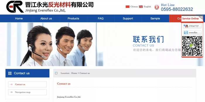 Компания Jinjiang Evereflex Co. Ltd. производит и поставляет более 100 видов светоотражающей продукции по всему миру. Они ориентированы на рынок и на клиента. Они экспортируют продукцию во многие страны Азии, Ближнего Востока, Европы и Америки.