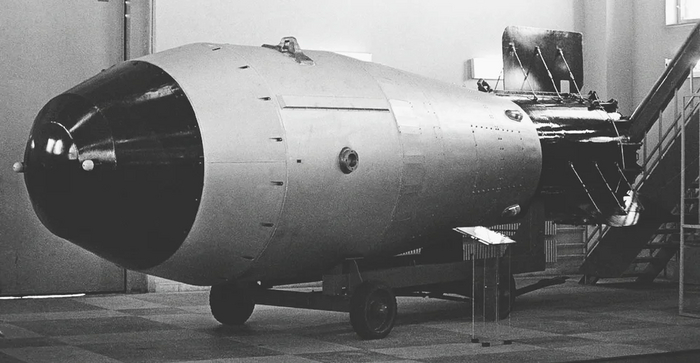 Пожалуй, самое известное ядерное оружие в мире, которое было приведено в действие 30 октября 1961 года на полигоне «Сухой нос» на острове Новая Земля. Бомба была создана в единичном экземпляре. Её предназначение — наглядно показать, что, если понадобится, СССР может наклепать таких устройств и накидать их Дяде Сэму за шиворот. Побочным эффектом было осознание того, что с помощью многоступенчатой конструкции можно создать бомбу буквально неограниченной мощности. Мощность взрыва составила 58,6 мегатонны. Чтобы ты понимал, бомба, которую сбросили на Хиросиму, составляла от 13 до 18 килотонн, что примерно в 3 800 раз меньше. Ядерный гриб поднялся на высоту 67 километров, а его диаметр достиг 95 километров в верхнем ярусе. Вспышка была видна на расстоянии более тысячи километров, а облако — за 800 километров от места взрыва. Взрыв был такой мощный, что взрывная волна трижды обогнула планету. До сих пор это оружие остаётся культовым и обрастает новыми слухами. Возможно, именно благодаря «Царь-бомбе» США не решились на атаку на СССР, на которой военное командование этой страны настаивало ещё с начала холодной войны.