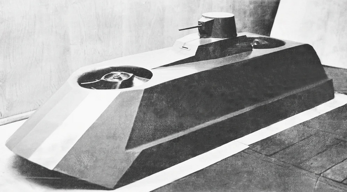 Также известен как «Земноводный подлетающий танк» — проект советского лёгкого танка, увидевший свет в 1937 году. Вернее, был создан только макет в масштабе 1:4. Он должен был иметь носовые и кормовые бронелисты под большими углами наклона к вертикали, два воздушных винта, вращавшихся с помощью авиационных двигателей, и оснащаться различным вооружением. Благодаря мощным двигателям боевая машина должна была двигаться над землёй или водой на высоте примерно 20–25 сантиметров и развивать максимальную скорость до 120 километров в час. Да, это самый настоящий прототип летающей машины, разработанный в те времена, когда ещё не до конца вытеснили конную тягу. Увы, но проект был закрыт по неизвестным причинам.