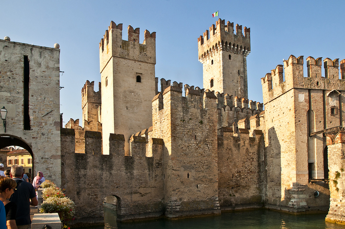 Замок Скалигеров на берегу озера (XIII век), некогда служивший военным портом веронской флотилии.