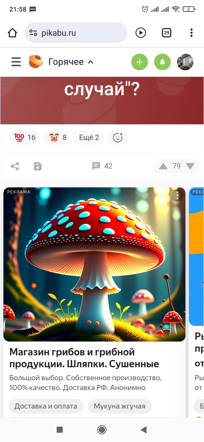 Забил в поисковике запрос про грибы, для дочки, для уроков, 2 недели назад. Зашёл на пару сайтов, и понял что, не там и не то выходит. Ответ нашел в Википедии ( не рекламирую). И начался треш. В мобильной версии, и в браузере компа хром просто пи...ц. Реклама одного и того же сайта с разными рисунками и подтекстами. Не помогает ни чего! Ни жалобы, ни персональный отказ от рекламы, ни фига! Такое чувство что @Yandex директ, персонально только мне пихает эту рекламу. А ВК (браузерная версия в хром) это хрень вылазит через одну, две рекламы. Как это этого избавиться?