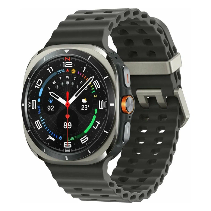 Galaxy Watch Ultra — ответ Samsung на Apple Watch Ultra. Они выглядят как классические часы, но включают функции смартфона. Титановый корпус не царапается при падении и не окисляется от пота.