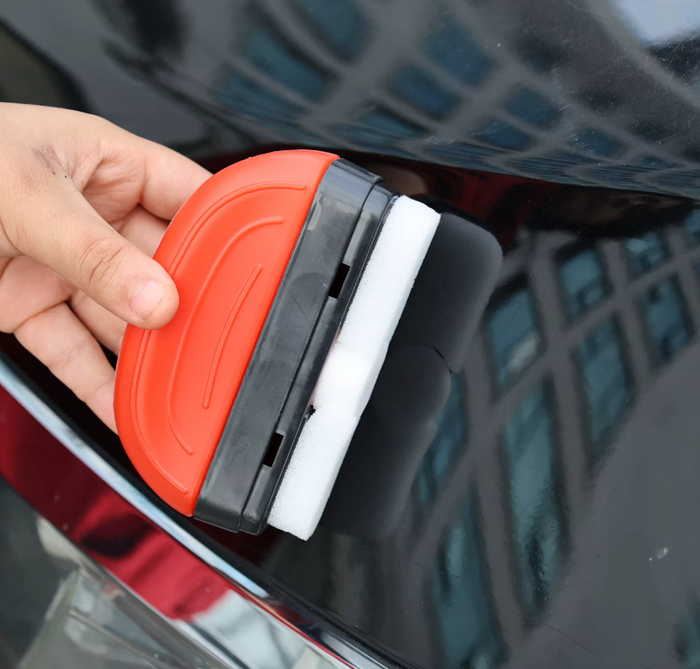 Средство для удаления масляной плёнки и водных пятен с автомобильного стекла восстанавливает прозрачность лобовых и боковых стёкол. Формула растворяет жирные налёты, следы от дворников, дорожную пыль и следы твёрдой воды, улучшая видимость при движении в дождь или ночью. В комплект часто входит губка или щётка, упрощающая нанесение состава.