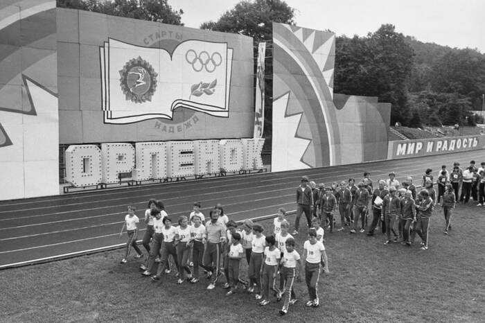 5. Дети в лагере «Орленок» классами отправляются на легкоатлетические соревнования, 1983 год.