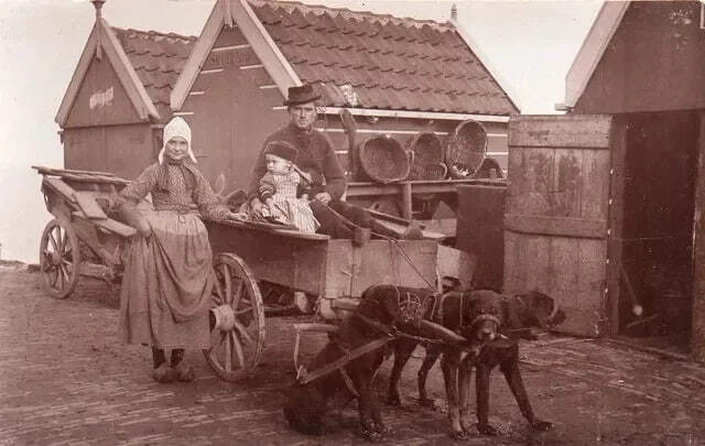 17. Телега запряженная собаками. Волендам, Нидерланды, около 1906 года.