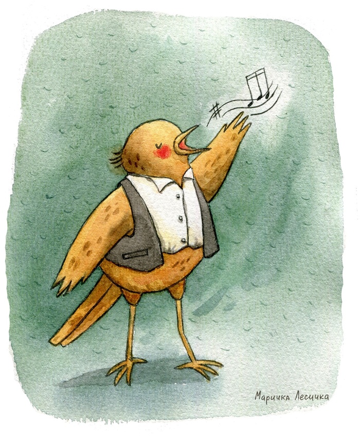 Услыхал об этом соловей и захотел в том театре работать. Оставил лес, родное гнездо, соседку-иволгу да отправился в город.