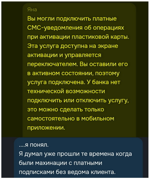 Позже выяснилось, что карта подвязана к аккаунту, к которому был доступ у кого-то из родственников. Темы поста это не отменяет, + добавляет вопросов: Почему не было уведомлений и том, что вошли в аккаунт, не было уведомлений на номер о подключении платной подписки и не было уведомлений о том, что с карты собираются списать деньги, хотя бы пуш-уведомления ( но это больше вопрос к банку)