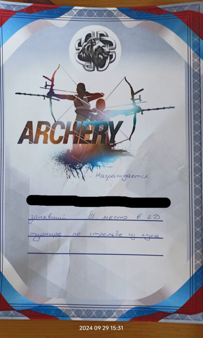Сегодня ровно год, как я занимаюсь стрельбой из лука в спортивной секции.