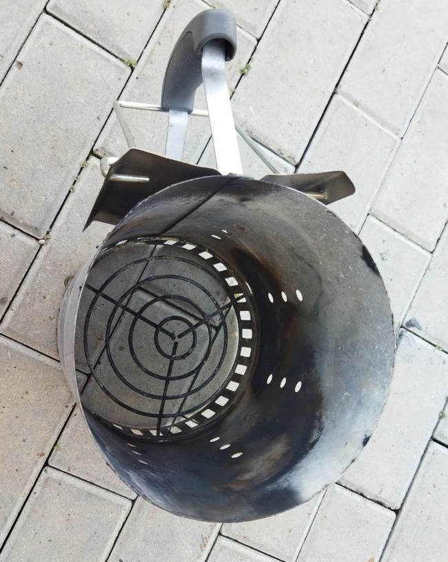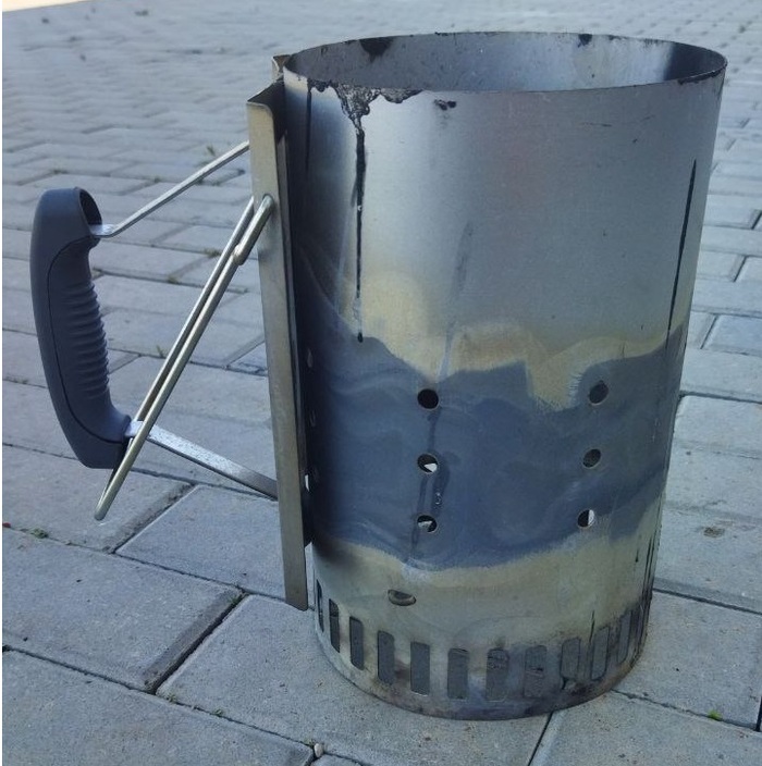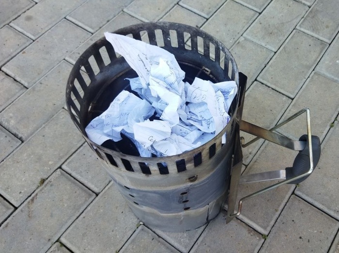 Знакомьтесь, стартер для углей. Куплен за 450рублей в сетевом магазине на букву К. Сверху засыпается уголь, снизу пихается бумага,мв можем случае полмешка оставшегося от угля. Далее поджигается.