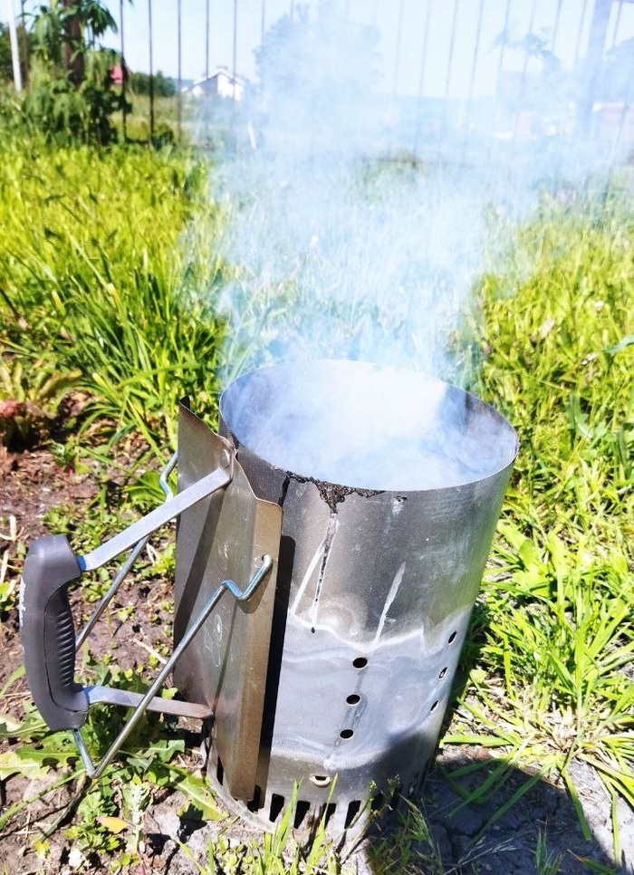 Не то, что бы готовлю…Так. Погонял мангал слегка на выходные. У нас семейная баня по субботам. Поэтому легкий перекус. Колбаски жарил. И, кстати, в очередной раз насладился работой стартера для розжига. Я им не только угли разжигаю, но и дрова. На этом приборе решил заострить внимание, так как возникают вопросы ,после поста про бездырочный мангал с глубиной 120мм. Очень полезная и нужная вещь! Его изготовил из баллона от фреона. Объемом с ведро. Мешок углей за раз разжигаю. Размер позволяет! Бумагу на дно-дров пихаю, сколько влезет. Хватает на раз пожарить шашлык.