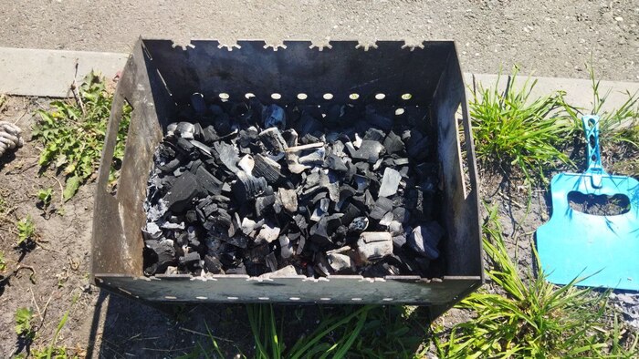 Далее высыпаем их в мангал