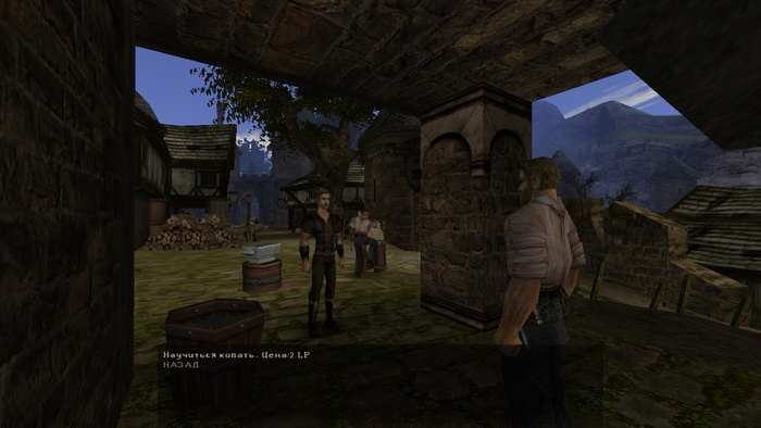 Прокачка. Сложная так как тут не нужно золото. А требуется иметь "очки" что даются за каждый полученный уровень. При этом учить умения нужно у учителей, а они разбросаны по всему Хоринису. То есть бегать предстоит и немало.