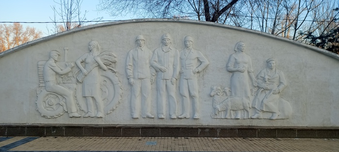 На вершине арки фигуры «Тракторист и колхозница» поднимают к небу аллегорический сноп колосьев на высоту 32 метров — символ единства тяжёлой промышленности и сельского хозяйства, опор советской экономики.