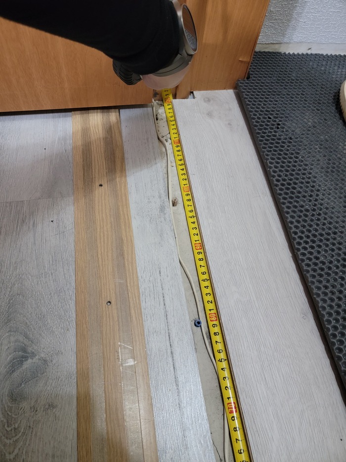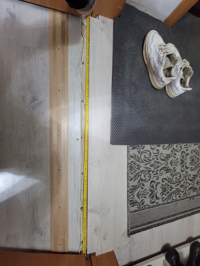 Раньше был установлен метеллический порожек, постоянно брякал да и совсем не в цвет, вот сейчас задумался как обиграть нормально. Что можно сделать и как?