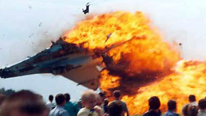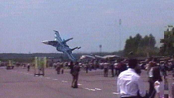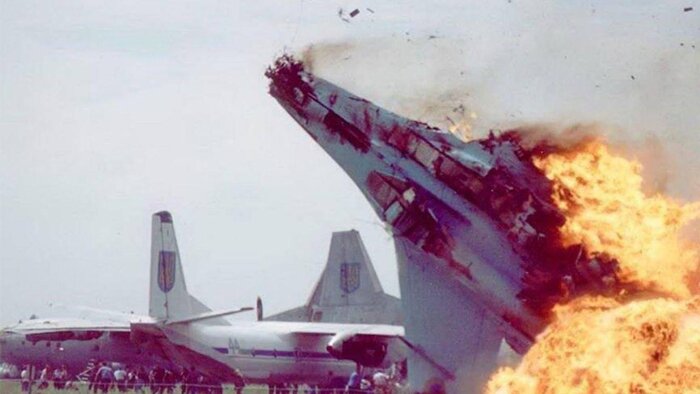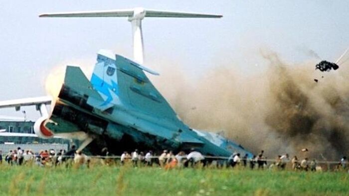 27 июля 2002 года истребитель СУ-27Б во время выполнения маневра на малой высоте не справился с управлением и врезался в толпу на аэродроме. Тогда погибло 77 человек, среди них были и дети.