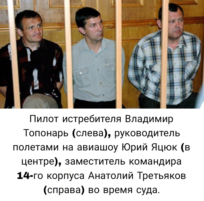 Позже Топонарь, Егоров, а также руководитель полетов на авиашоу Юрий Яцюк, начальник службы безопасности полетов 14-го корпуса Анатолий Лукиных, ответственный за подготовку экипажа самолета Олег Дзюбецкий и заместитель командира 14-го корпуса Анатолий Третьяков предстали перед судом. Некоторые из них получили длительные сроки тюремного заключения и огромные денежные штрафы: больше всего "досталось" Владимиру Топонарю и Юрию Егорову.