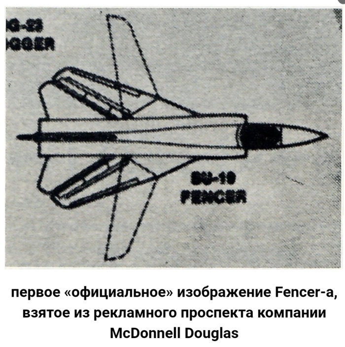 В 1975 году была опубликована официальная фотография модели, которая на первый взгляд выглядела как E-230 [1] или F-111 (или как гибрид обоих) и которая при более внимательном рассмотрении может показаться грубой копией последнего самолета ОКБ Сухого. Вскоре после этого компания McDonnell Douglas опубликовала в посвященном F-15 рекламном буклете (где Su-19, естественно, фигурировал как возможная жертва F-15) фотографию советского самолета, на которой было показано заметное сходство между Su-19 и F-111.