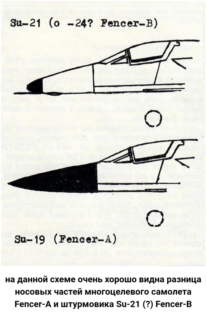 Однако вскоре после этого были опубликованы «реконструкции» Fencer-а, которые по своему внешнему виду очень напоминали MiG-27 (МиГ-27). Это (а также тот факт, что координационный комитет НАТО по стандартизации авиационного оборудования, присвоив первое обозначение Fencer-A, должно быть, располагало информацией, касающейся самолета с обозначением Fencer-B), как нам представляется, указывает на тот факт, что Fencer существует в двух версиях: Fencer-A, которая находится в том же классе, что и F-111 A, и Fencer-B, сравнимый с FB-111. Таким образом, Сухой пошел по тому же пути, по которому уже прошли Микоян и Гуревич, прототип E-231 которых превратился в истребитель завоевания господства в воздухе MiG-23 (МиГ-23), а его ударной версией, похожей на Jaguar, стал MiG-27 (МиГ-27).