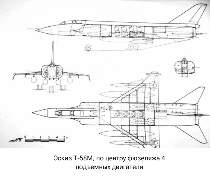 Уже в 1964 году работы получили новый шифр Т-58М, что было связано с корректировкой технического задания на новый самолет, который военные начали рассматривать как низковысотный штурмовик, который должен был отвечать требованиям о возможности укороченного взлета и посадки. Еще одним требованием со стороны военных было обеспечение низковыстного полета на сверхзвуковой скорости, это было необходимо для преодоления зоны ПВО вероятного противника. На самолете в этом варианте предлагалось установить в средней части фюзеляжа сразу четыре подъемных двигателя РД-36-35 (режим укороченного взлета и посадки). А полный состав силовой установки предполагал также наличие двух маршевых ТРДФ Р-27Ф-300. Полетный вес нового самолета оценивался в 22-23 тонны.