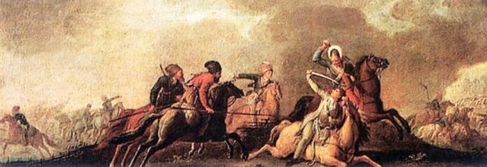 (Казаки выносят раненого Т. Костюшко с поля боя под Мацейовицами)