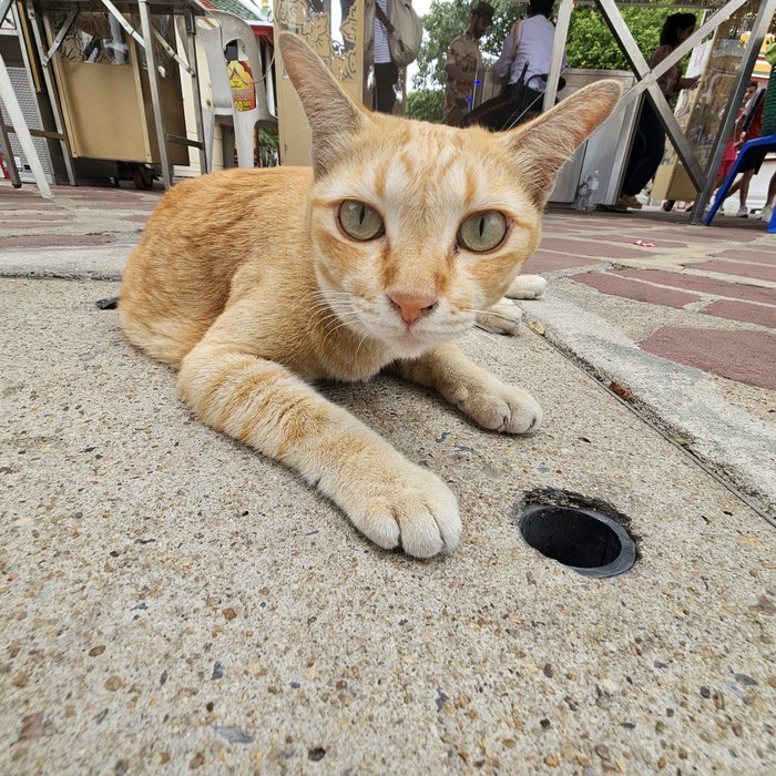 Киска на входе в храм