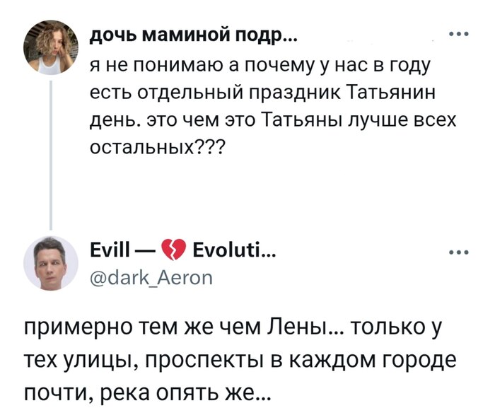 Если бы раннехристианская мученица Татиана Римская, жившая в III веке, могла взглянуть на то, как чтут её память в России, она бы, мягко говоря, удивилась. Вместо смиренных молитв и аскезы — реки медовухи, штурм ресторанов и истошные крики «Халява, приди!» в открытые форточки. Но таковы уж люди: любой серьёзный повод мы умеем превратить в грандиозный праздник жизни. И не сказать, что это плохо.