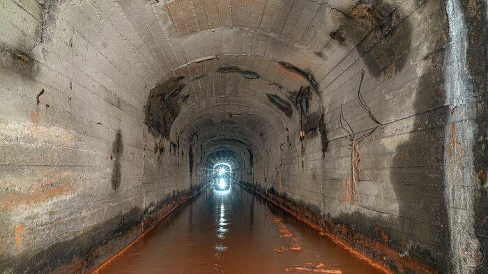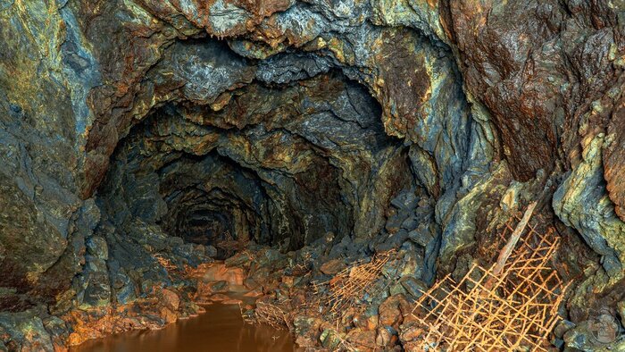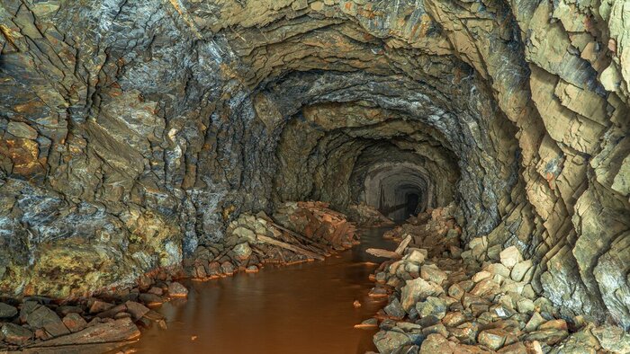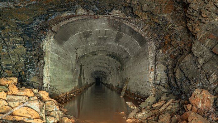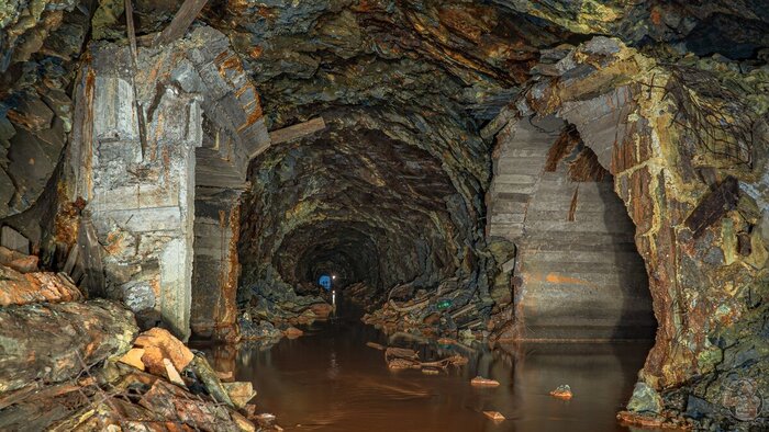 Цвет воды, скорее ржавый, чем красный. Тяги практически нет и граница света и тьмы не дарует желанную прохладу после летнего зноя. Холодок настигает позже, когда свет с поверхности потеряется в изгибах штольни.