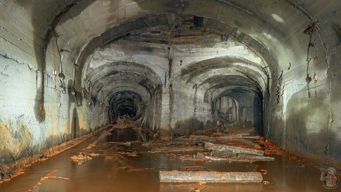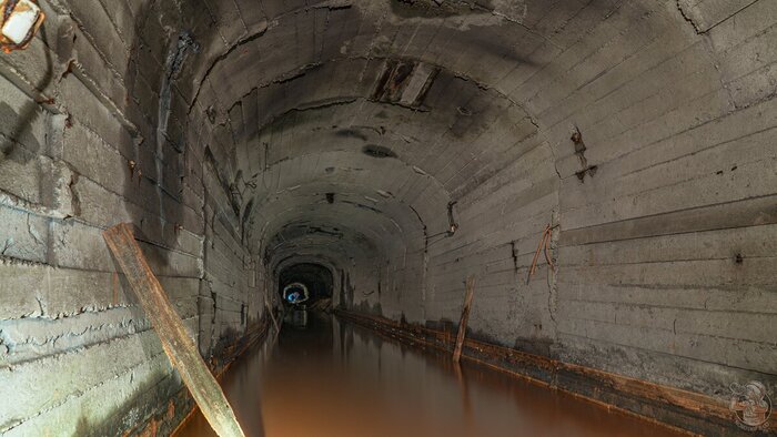 Иных доступных ответвлений не было. Конечно, в одном месте бетонный тоннель заманчиво нырял под воду, но исследовать затопленные участки рудника, особенно в такой мутной воде у нас не было возможности.