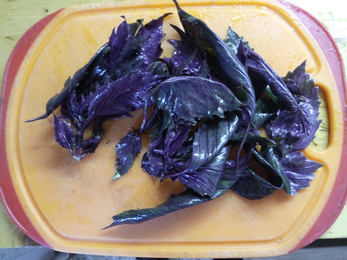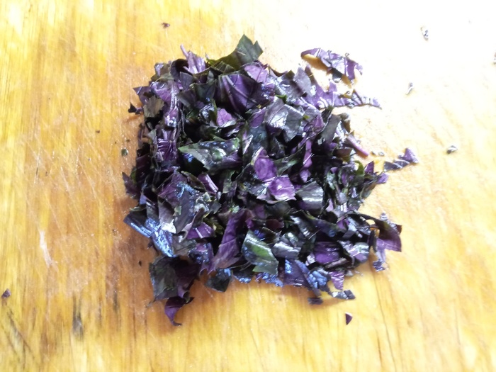 3. Райхон. Он же красный базилик, 3 веточки, но беру только листья.