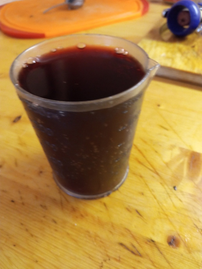 Спустя три часа – у нас уже кончилась вторая бутылка – вынимаем голяшку на тарелку, даём отдохнуть ей под крышкой, выкидываем из бульона корень сельдерея и увариваем соус на плите ещё минут 15-20.