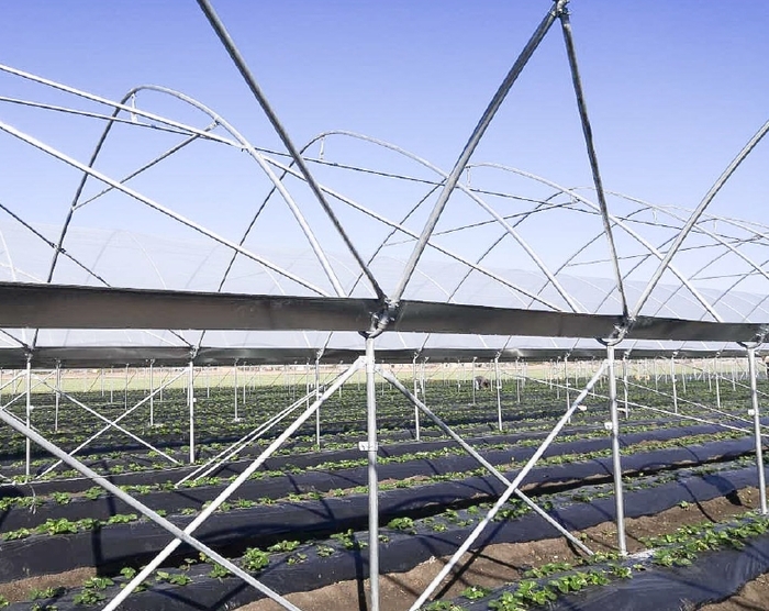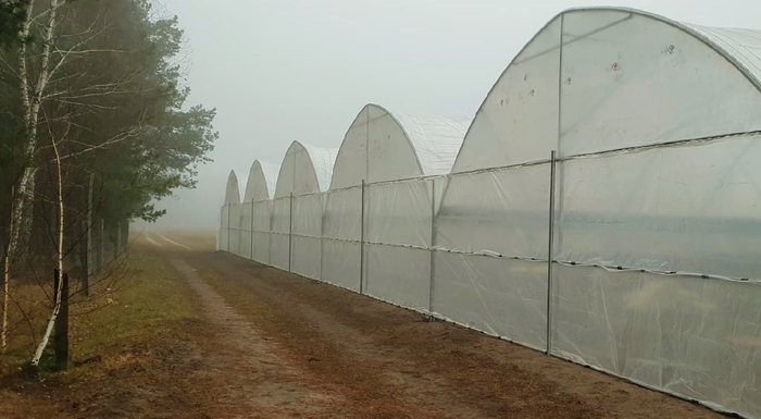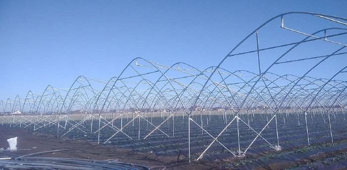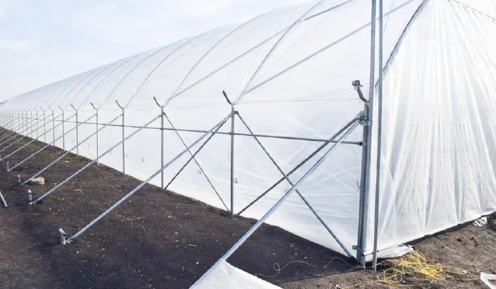 Туннели же это плёночные конструкции арочного типа. Обычно около 5 метров в высоту и 9 метров в ширину, длина может быть любой. Но как правило это 50-100 метров. Каркас металлический, плёнка светопроницаемая, толщиной 150–200 микрон, с добавками для рассеивания света, удержания тепла, антифог и тд. Самая важная с точки зрения климата часть, чтобы не было быстрого нагрева и такого же быстрого выхолаживания.