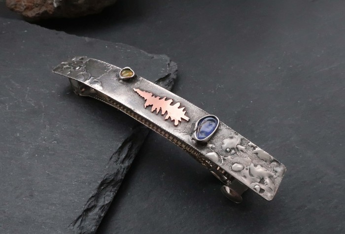 Дальше дело техники: снова паяю, корректирую… Добавляю капелек, колечко, чтобы подвешивать, патинирую, покрываю ювелирным антиоксидантом. Готово.