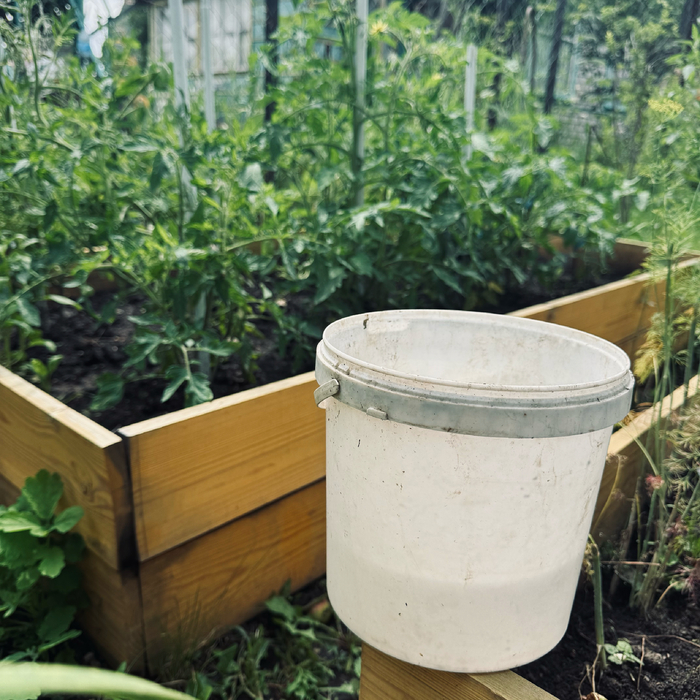 Все тщательно перемешиваю в ведерке и вперёд - спасать урожай.