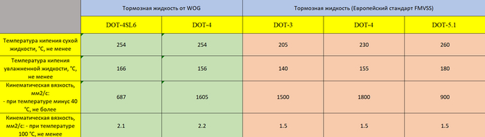 -Составы сертифицированы и допущены к продаже на территории таможенного союза.Давайте проведем сравнительную характеристику по тормозной жидкости от WOG с европейским стандартом: