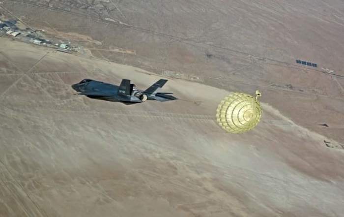 Испытания посадочной парашютной тормозной системы F-35 в воздухе.