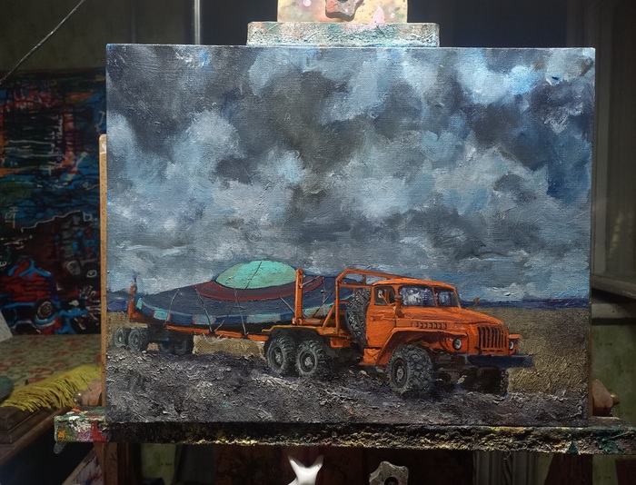 А вот и третья серия с инопланетным кораблём подъехала, в прошлом посте вы говорили что они как-то хреново поднимают тарелку , ну конечно блин , взяли и уронили , теперь всю кривую везут дальше неизвестно куда . Лишь бы снова не уронили, да и додумались на лесовоз закрепить круглую штуку . Правильно, - квадратное носят , а .. ..