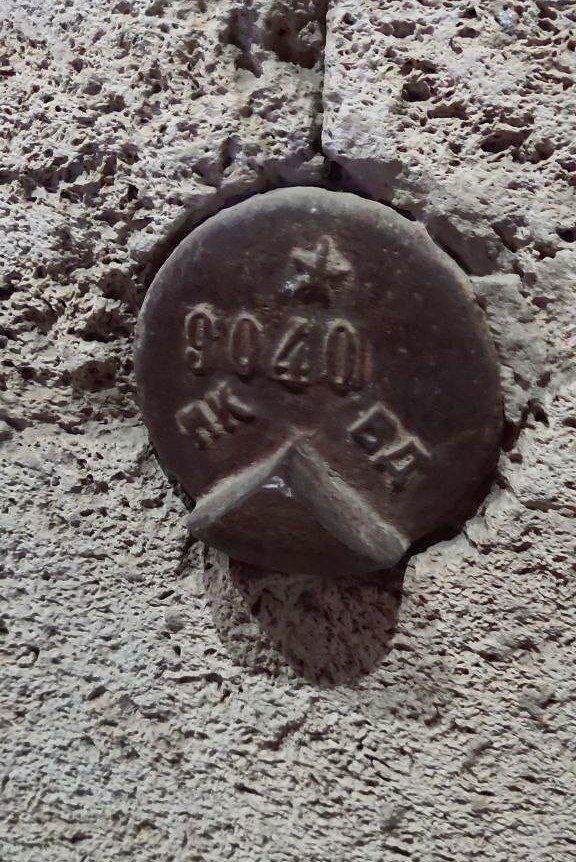 Репер в стене здания в самом южном городе России - Дербенте.