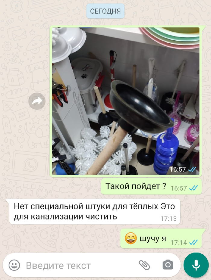 -- "Нет, нужен специальный инструмент для стекла. А это вантуз для прочистки канализации" )