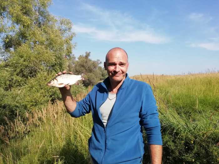 Утро, рыбалка, завтрак. Леха поймал хорошего леща, решили его сожрать в обед.