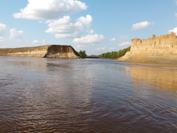 Стенки у берега, где раньше был перешеек, очень высокие, при близком проходе, кажется, что вот-вот, кусок берега оторвется и поедет в воду, а тебя окатит мощной волной. Страшно даже чуток находится совсем рядом, мы прошли прямо в перешеек, теперь у жителей Нижней Омки есть отличные места для рыбалки.