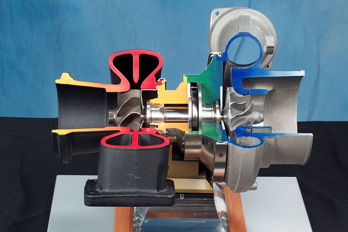 Поэтому вношу ясность: если быть предельно точным, конечно, данный автомобильный агрегат называется ТУРБОКОМПРЕССОР. Он состоит из горячей части - ТУРБИНЫ. И холодной части - КОМПРЕССОРА. Выхлопные газы крутят турбинное колесо, кручение передаётся валом на компрессорное колесо, которое нагнетает воздух в камеру сгорания двигателя автомобиля. Это что касается терминологии.