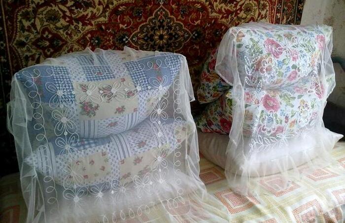 Разумеется у людей в возрасте сразу предстанут перед глазами занавески из тюля. Как непреложный предмет обихода советских квартир.