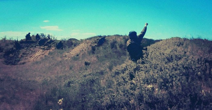 Офицер ЛНР поднимает людей в атаку. Бои на Бахмутовской трассе, лето 2015.
