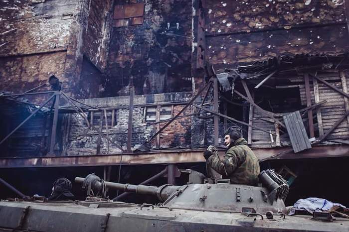 БМП ДНР, входящая в Углегорск зимой 2015-го.
