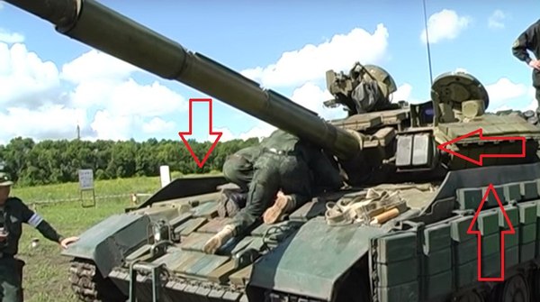 Были добавлены дополнительные экраны закрывающие в бортовой проекции стык башни и корпуса, резиновая юбка по типу Т-80, и дополнительная динамическая защита на месте ИК прожектора(который очевидно был протерян)) и слева от пушки.