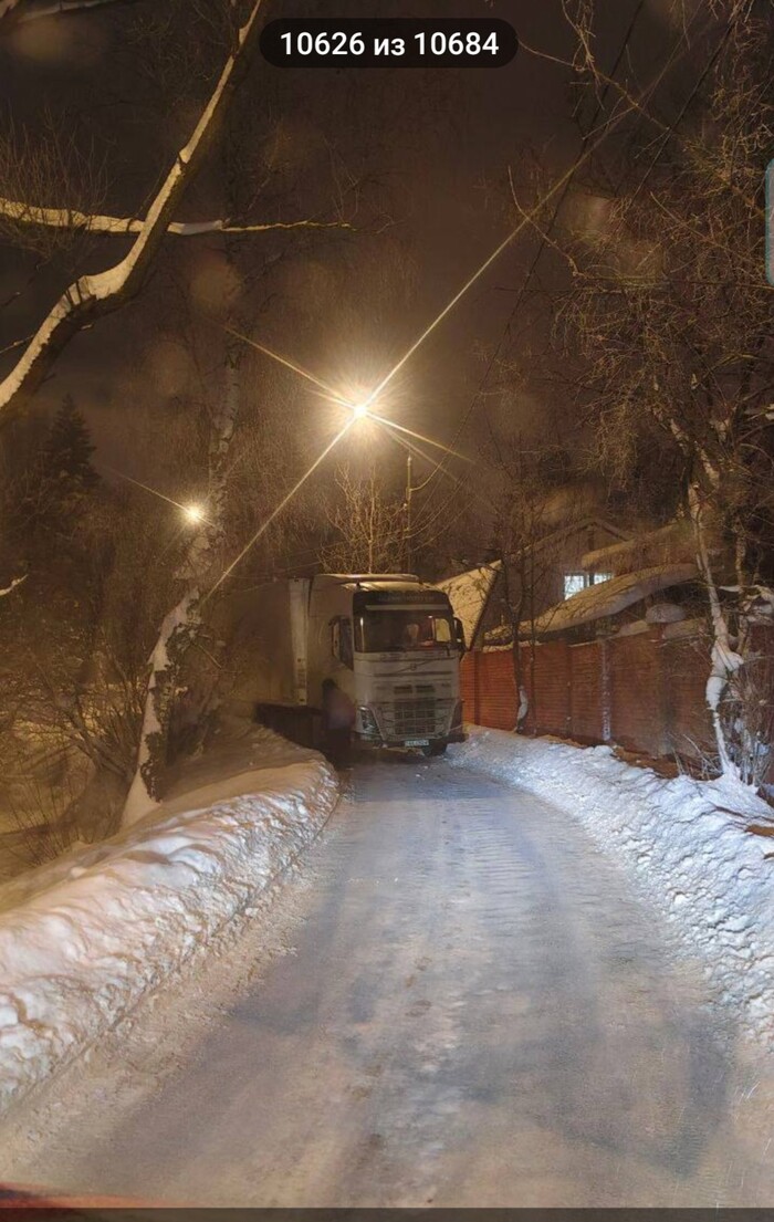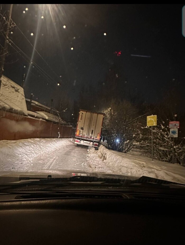 Вот это чудо начало ехать под знак-движение грузовых авто запрещено. Его не смущало начало частного сектора и проезжей части в полторы полосы. На резонный вопрос-зачем, последовал не менее гениальный ответ-навигатор так показал!