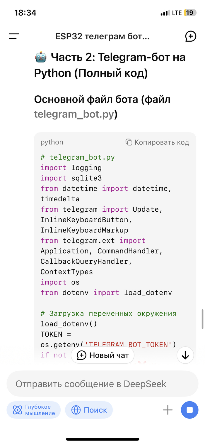 Неспешно (уже пару лет) пилю для супруги умный контейнер, который сможет сам заказывать доставку, до сегодняшнего дня несколько программистов писали код, но постоянно, что то не работало или работало не так. Понятно можно ввалить бабла и написать сразу круто, но не факт, что это кому то нужно будет, поэтому все делаем не спеша и за минимум денег и в свободное время) устал ждать программеров, был небольшой опыт работы с дипсик. Сегодня решил попробовать допилить код с помощью дипсик. В итоге за день получилось больше чем с программерами за год. Контейнер скидывает вес по изменению или раз в час в телеграм бота и то много времени потратил на выяснение ошибки, что один из контактов с датчика веса был припаян не на тот вход на ESP, и даже эту ошибку удалось найти с помощью дипсик, по факту просто вставлял код, грузил в Ардуино плату ESP32, в случае ошибки возвращал ее в дипсик и просил исправить код. Результат на 100% для MVP отличный, следующий шаг: база на SQLite, бот на питоне, и возможность запустить 10 тестовых пользователей по 5-10 контейнеров на каждого.