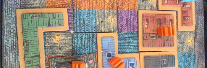 Игра проходит в две фазы: сперва игроки раскладывают тайлы мостовой, стараясь выложить “островки” своего цвета. Это важно.