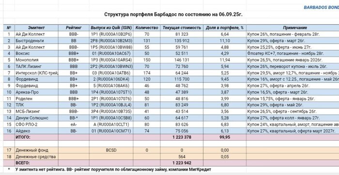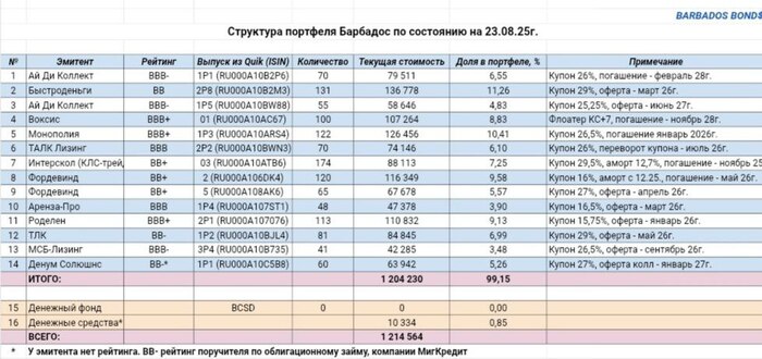 Оперативно за сделками в публичном портфеле и разбором отчетностей эмитентов (преимущественно ВДО), можно следить здесь 👉 https://t.me/barbados_bond