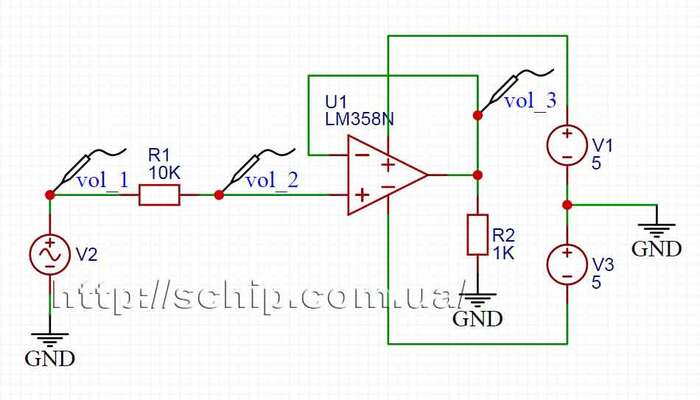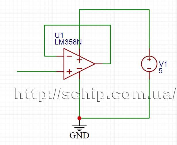 И тем более что схема с применением операционного усилителя получается очень простой. Всего лишь нужно замкнуть выход этого усилителя с инвертирующим входом.